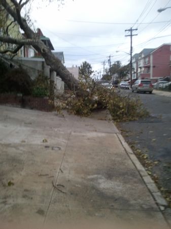 But I'm not here to talk about that. I'm here to ask you if any of you has lost a REALLY FUCKING HUGE TREE recently. Maybe it slipped out of your pocket while you were securing the plywood on your windows. Maybe you misplaced it while you were frantically updating your Twitter account about the encroaching tides and the lack of power in the East Village. Either way, I've found your tree, but I seem to have lost my window. So if you've seen a window anywhere and lost your tree, I propose a trade.